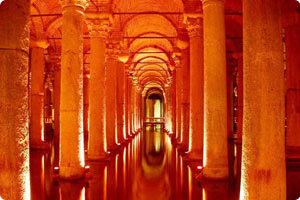 İstanbul'daki en büyük kapalı sarnıçtır. Ayasofya binasının batısındaki küçük binadan girilir. Sütun ormanı görünümündeki mekanın tavanı tuğla örülü, çapraz tonozludur. Zamanında civardaki bir bazilikadan dolayı bu isimle anılmıştır. |